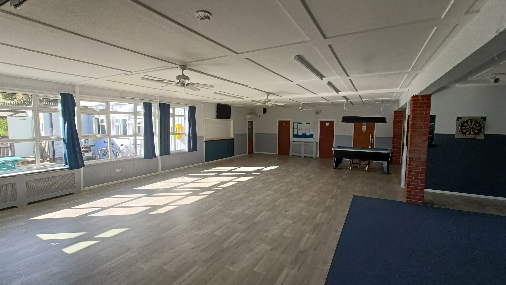 The hall is a good size with a capacity of around 150 people, stage with lighting for bands or a DJ, newly fitted kitchen, refurbished WCs including disabled access and baby changing facilities. There is also a pool table, darts boards and an enclosed outside space at the rear. Access to the licensed bar is available for private events.
